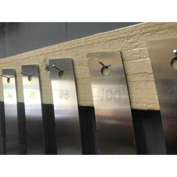 De hoeken zijn netjes afgerond en iedere sweep heeft het sweep nummer erin gelaserd. De set is voorzien van een nette conversie tabel van sweep nummer naar de radius in inches en millimeters. Door een juist geplaatst gat zijn alle sweeps ook netjes (hoog) weg te hangen.