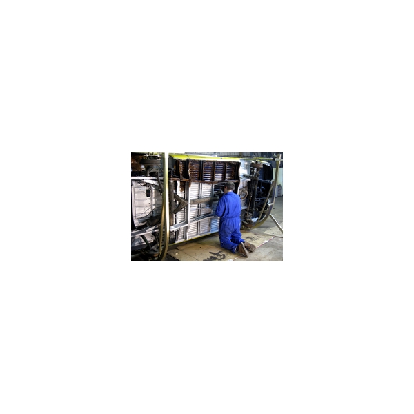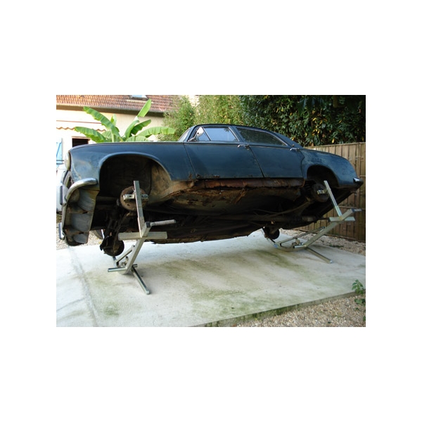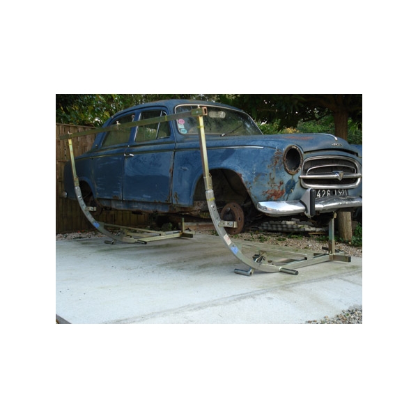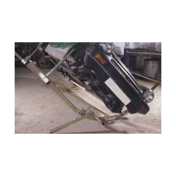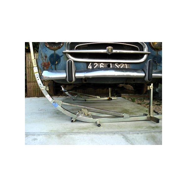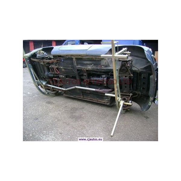Dit practische in Denemarken gemaakte gereedschap bestaat uit een tweetal stalen frames, dat op eenvoudige wijze in elkaar kan worden gezet en zodanig is geconstrueerd, dat een auto die hierop bevestigd wordt zonder enige moeite traploos, vbmn 0 - 90 graden, op zijn kant kan worden gezet .