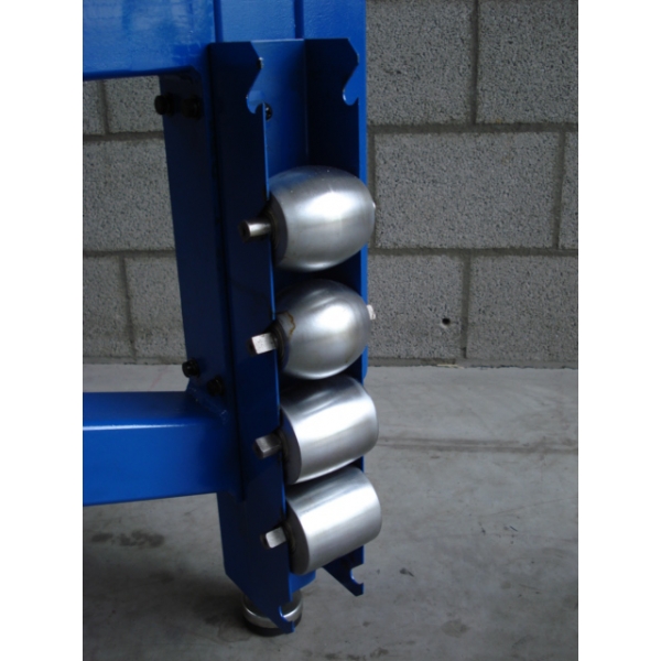 Zware, robuuste constructive, standaard geleverd met 5 onder wielen van verschillende radia.