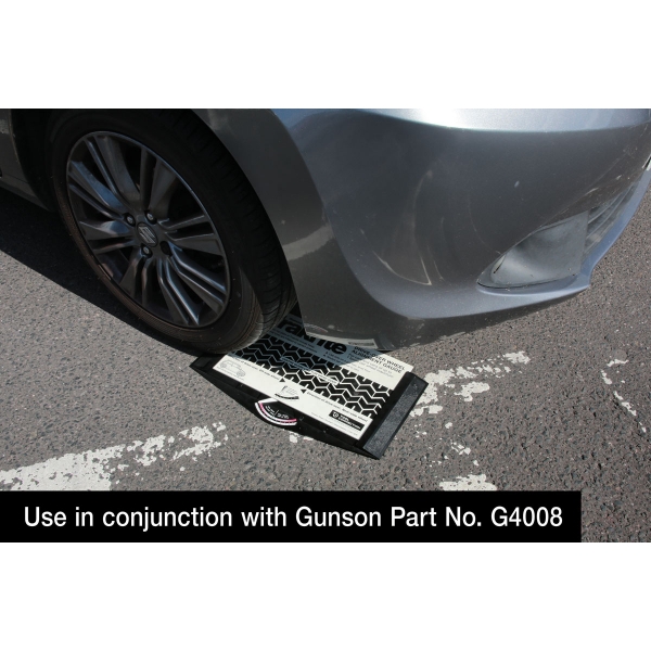 Deze robuuste rubberen mat is speciaal ontworpen voor gebruik met de Gunson Trakrite-wieluitlijningsmeter. Hiermee wordt de hoogte van het wiel verhoogd en wordt de band van het wiel tegenover het wiel waarvan de uitlijning moet worden gecontroleerd, vastgegrepen voor een grotere nauwkeurigheid.
