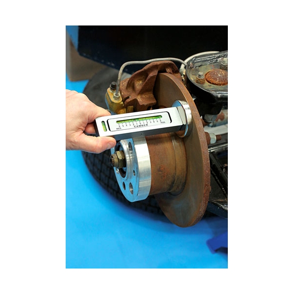Hiermee kunt u de wielnaaf terug brengen naar de originele camber positie. Ook kunt u de camber hoek controleren voordat u het wiel monteert. Deze meter spaart een dure reparatie uit.