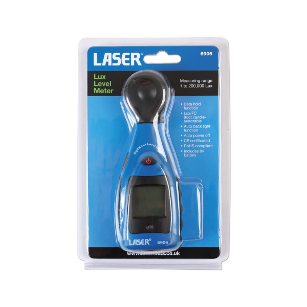Lux-niveaumetingsbereik van 1 - 200.000 lux.