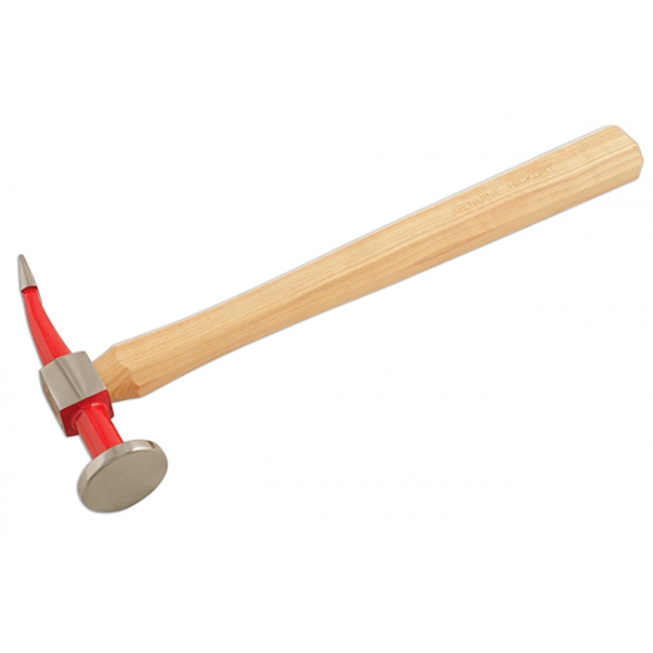Een kant van de hamer is bol, de andere taps en onder een radius uitlopend.