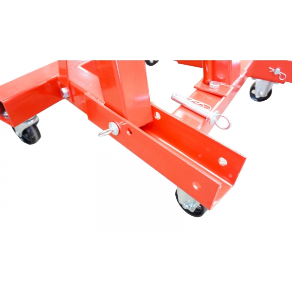 Verrijdbare motor takel, voorzien van 2 vaste en 2 bokwielen.