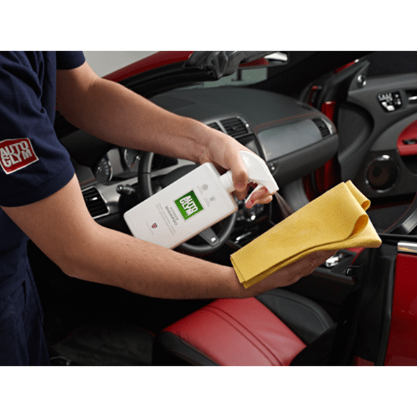 Een vlekkeloos interieur is net zo belangrijk als perfecte lak. In een schone auto stappen is niet alleen geweldig, maar helpt u ook te focussen op de rit. Interieurshampoo (Interior Shampoo) is geschikt voor al uw interieurstoffen en harde oppervlakken. Als u leren oppervlakken hebt, kunt u beter Lederreiniger (Leather Cleaner) gebruiken.