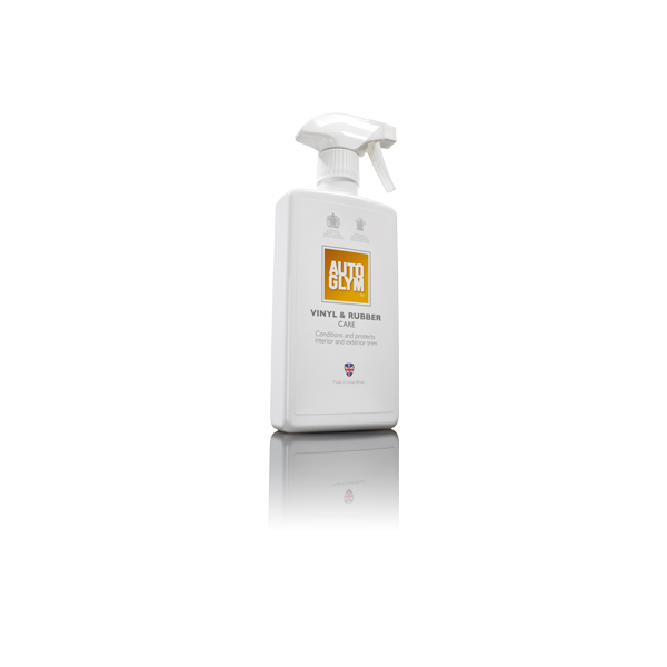 Net als de lak, moet ook het interieur worden beschermd. Na verloop van tijd kan de zon deze oppervlakken doen verkleuren, uitdrogen en barsten. Vinyl- & Rubberverzorging (Vinyl & Rubber Care) zorgt ervoor dat deze oppervlakken beschermd blijven. Hij kan worden gebruikt om een hoge of lage glans te verkrijgen en heeft een frisse citroengeur.