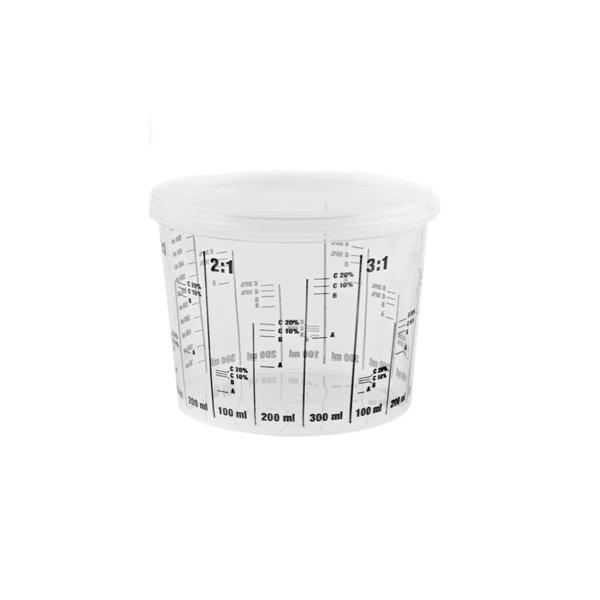 Deze mengbeker voor lakvoorbereiding zijn gemaakt van polypropylene. Door de helderheid van de mengbekers zijn de mengratio’s en de inhoud goed zichtbaar vanuit de binnenzijde van de beker.