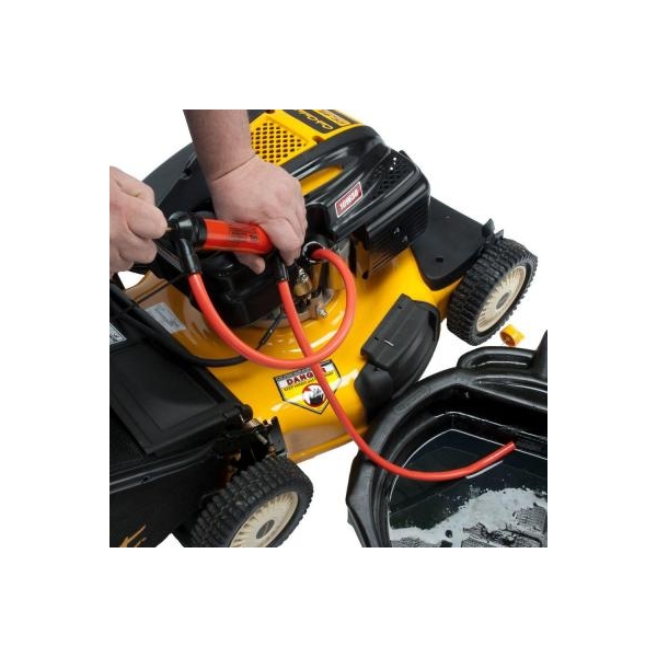 Sluit de 2de slang aan op de andere nippel en plaats deze slang in bijvoorbeeld een jerrycan.