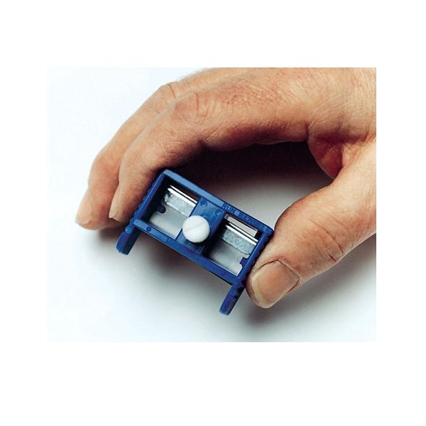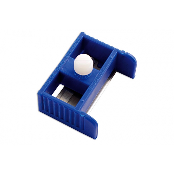 De houder bevat een standaard scheermesje. Plaats deze onder de juiste hoek en haal hem licht over het oppervlak om de zakker te verwijderen.