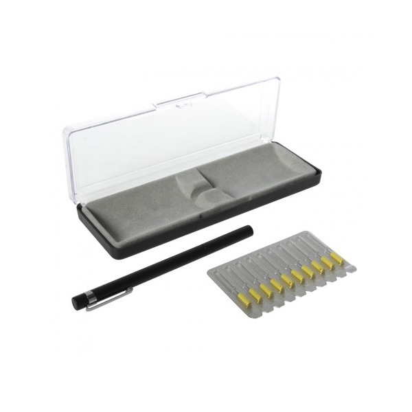 Deze stofnaaldenset bestaat uit een stofnaaldhouder (penhouder) met 10 stofnaalden in een opbergdoosje.