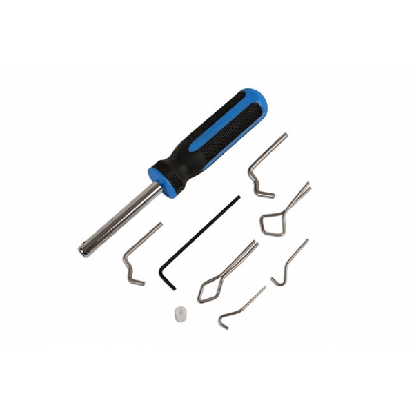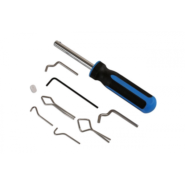 Met deze set kunt u de pezen die in de ruitrubbers van oudere auto`s gemonteerd zitten eenvoudig plaatsen.