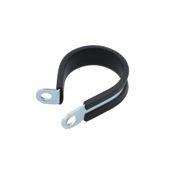 Verzinkte stalen 'P'-clips bedoeld om elektrische kabelbomen, kabels, kabelgoten, brandstof- en koelvloeistofslangen netjes en op hun plaats te houden.
