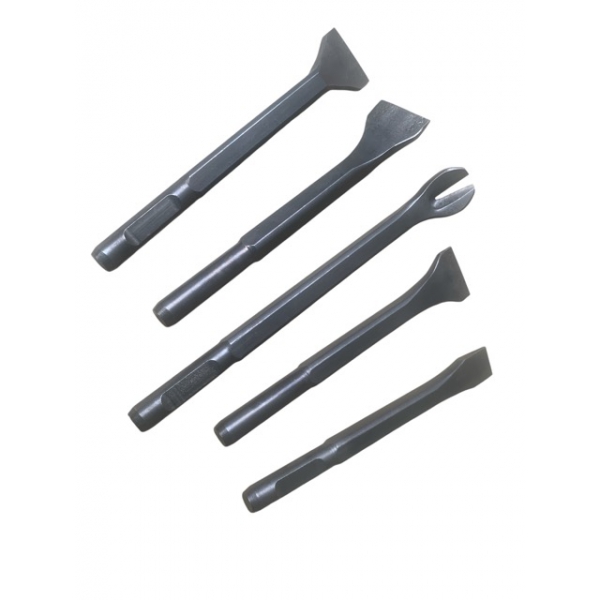 Het is eenvoudig om te wisselen tussen de verschillende koppen. De naaldbikhamer beschikt over 19 naalden en de beitel over 5 verschillende beitels.