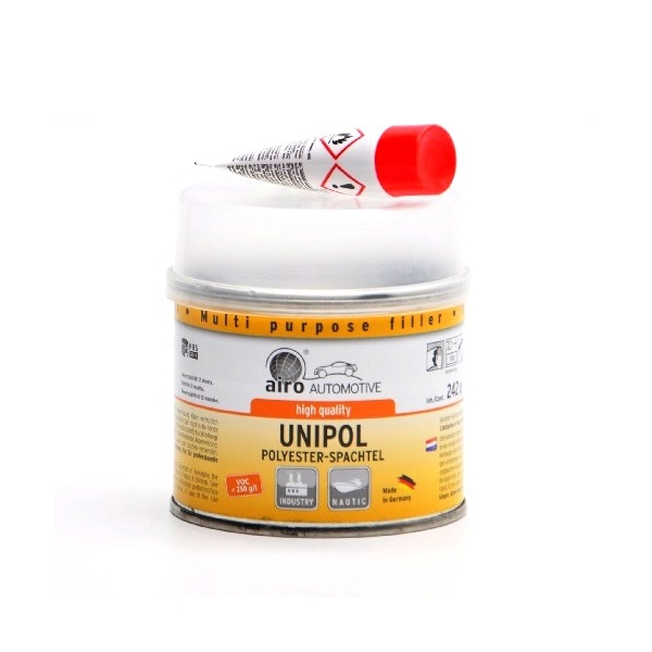 Unipol Ultra Plus: Onverzadigde polyesterharsen, inerte vulstoffen, thixmiddelen en pigmenten.