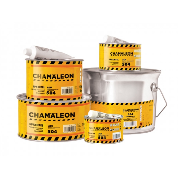 Chamaeleon Aluminium Polyester Putty is een 2-componenten polyester vul stopverf als mengsel van een medium-elastische, zeer reactieve, amino-preaccelerated polyesterhars met verschillende minerale, milieuvriendelijke vulstoffen en aluminium pigmenten.