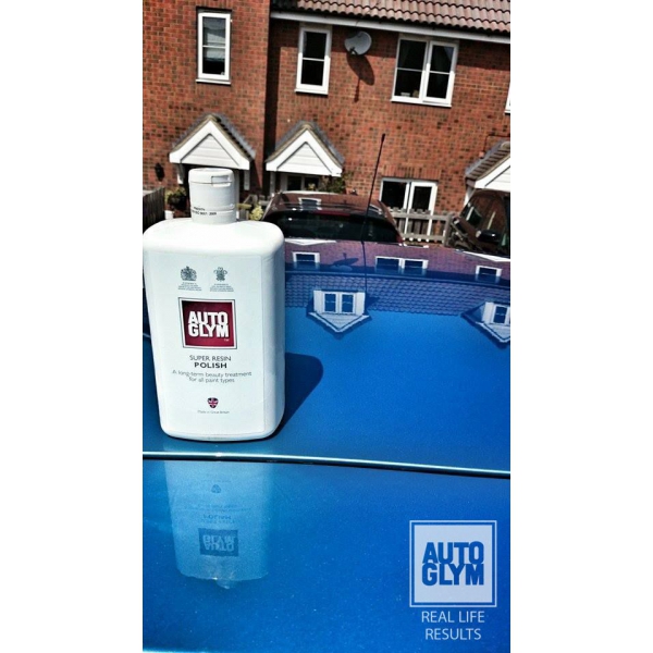 A: Superhars Polijstmiddel (Super Resin Polish) is alleen geschikt voor gelakte carrosserieën. Als een restant Superhars Polijstmiddel (Super Resin Polish) met ongelakte oppervlakken in contact komt, gebruik dan Autoglym Snelle Glasreiniger (Fast Glass) en een Hi-Tech Microvezel Droogdoek (Hi-Tech Microfibre Drying Towel) om dit te verwijderen.
