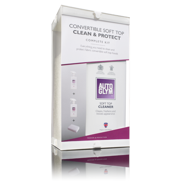 Regelmatige reiniging van uw softtop houdt groene algen op afstand en zorgt ervoor dat de originele kleur levendig blijft. Onze Complete Cabrio Softtop-Reinigings- & -Beschermingskit (Convertible Soft Top Clean & Protect Complete Kit) bevat alles wat u nodig hebt om de mohair, donzen, stoffen of canvas kap te reinigen en te beschermen.