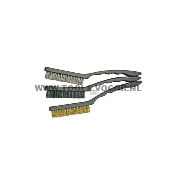 3 delige borstel set, brons, nylon en staal