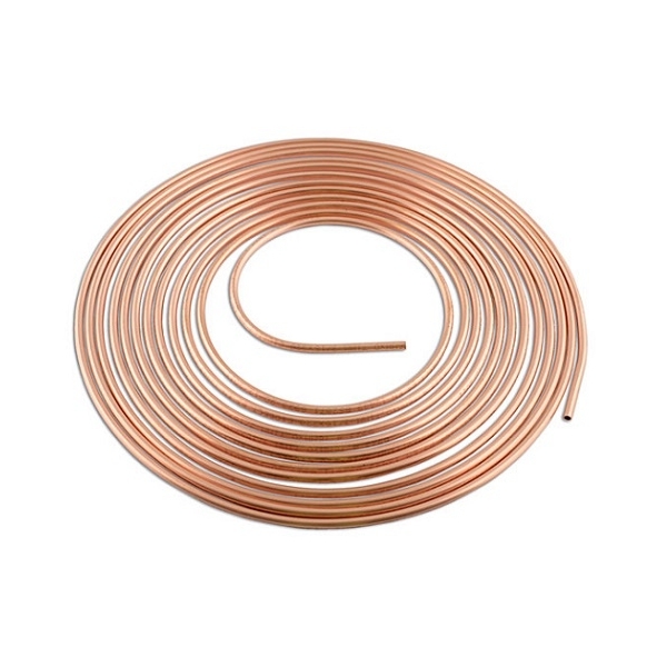 Naadloze koperen leiding 1/4` geleverd op een rol van 25ft, dit is circa 7,5 meter.