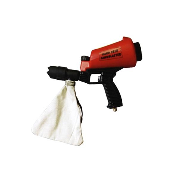 Het gebruikte straalgrit wordt in de zak onder het pistool opgevangen zodat u dit vaker kunt gebruiken.