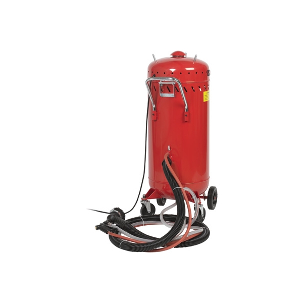 Deze robuste straalketel is buitengewoon handig om voorwerpen te stralen die niet in een straalcabine passen, bv gedeelten van een autobody.