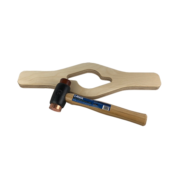 Hamer met koperen en runderhuid kop: